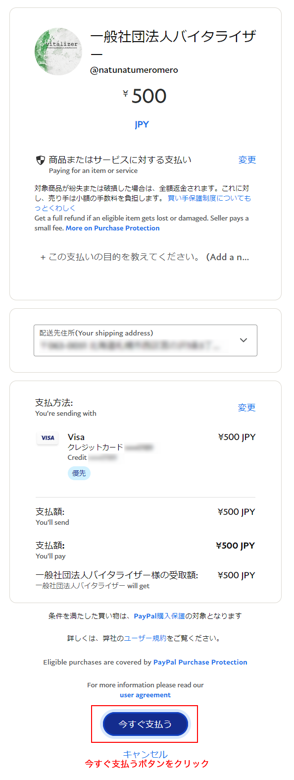 4.金額を決定したら、確認画面が表示されますので、今すぐ支払うボタンを押します。